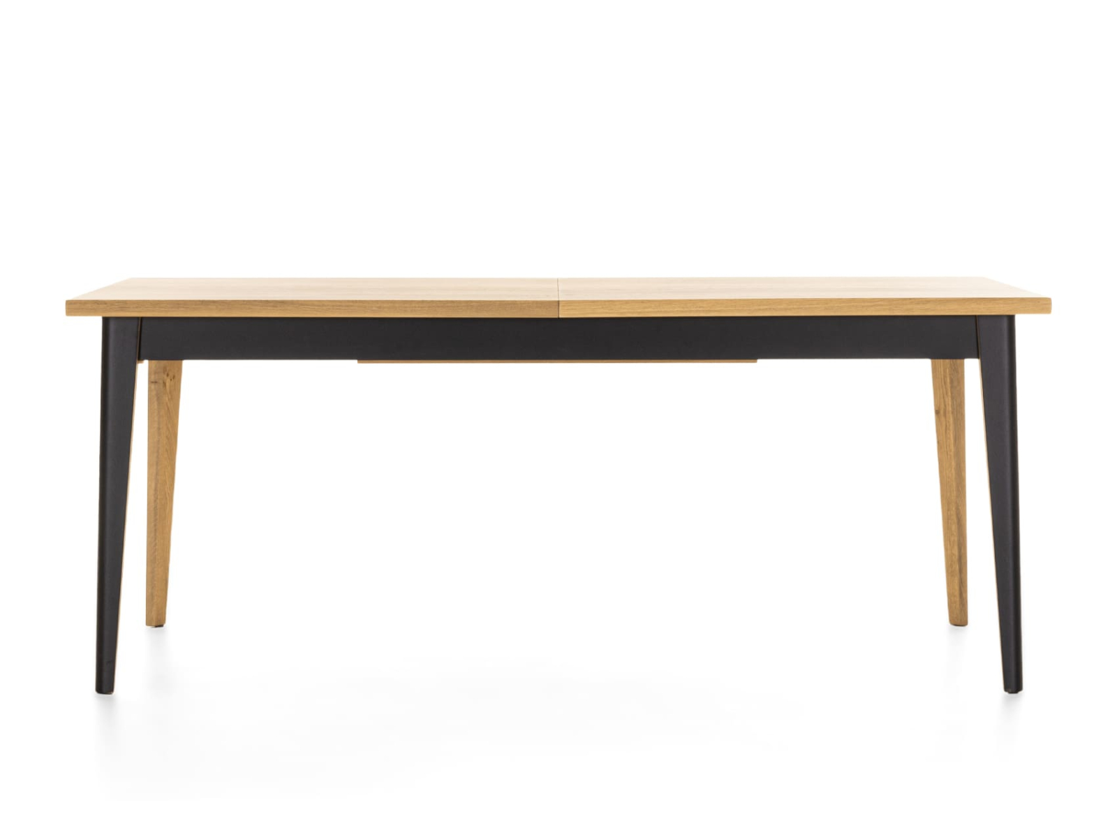 100% lemn masiv. Picioarele si traversele interioare sunt fabricate din lemn masiv de stejar cu ciclu lung de uscare. Targurile sunt fabricate din lemn masiv de fag furniruit cu stejar. Placa si extensia sunt fabricate din panel bordurat cu stejar masiv si furniruit cu furnir de stejar pe fata si de fag pe dos pentru placa, respectiv furnir de stejar pe ambele fete pentru extensie.