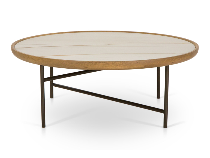 MASUTA CAFEA ROTUNDA HELIOS COMBO D87x31CM, CU PLACA CERAMICA SI STEJAR