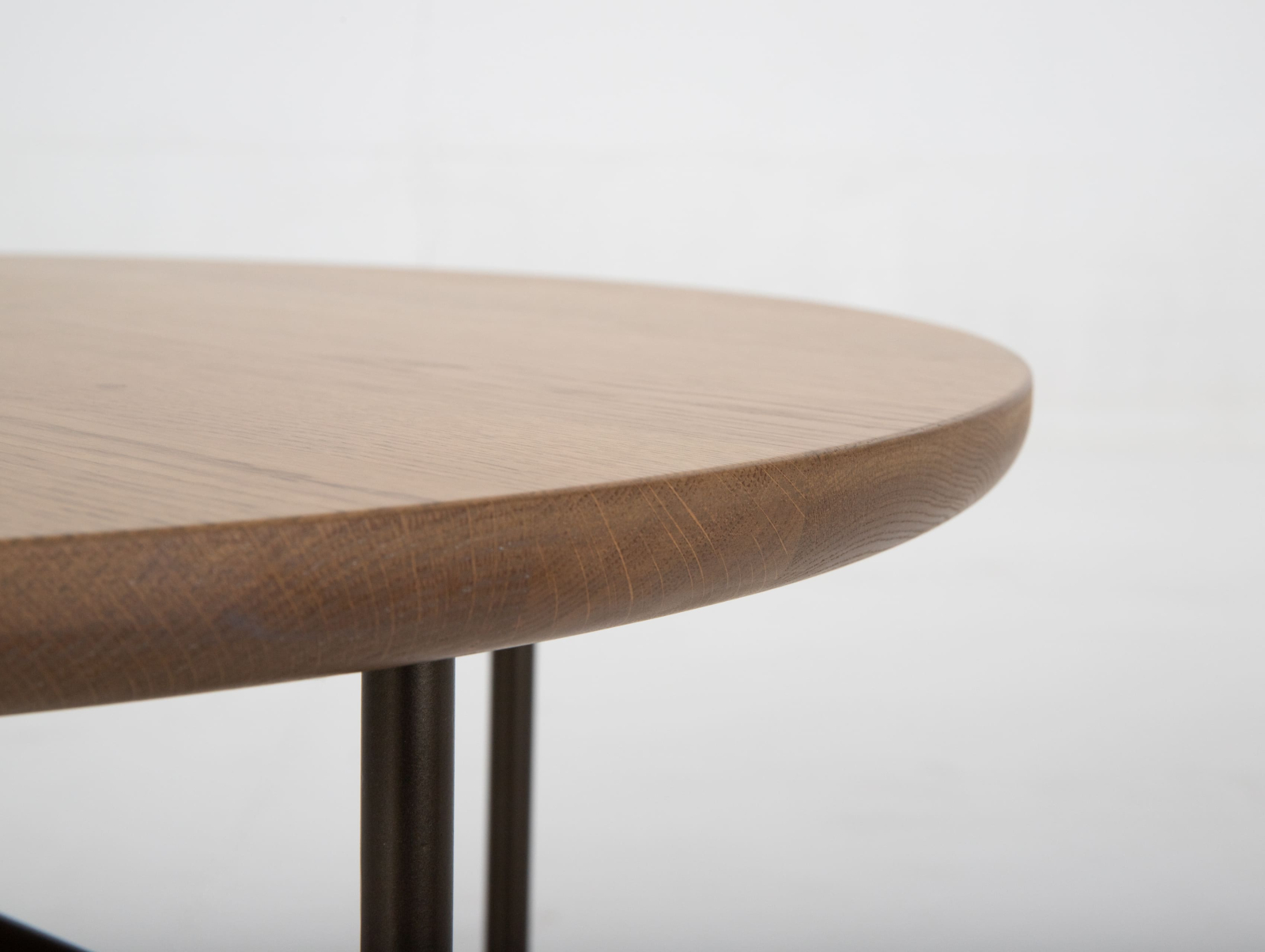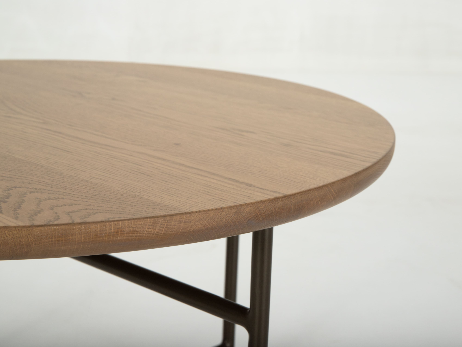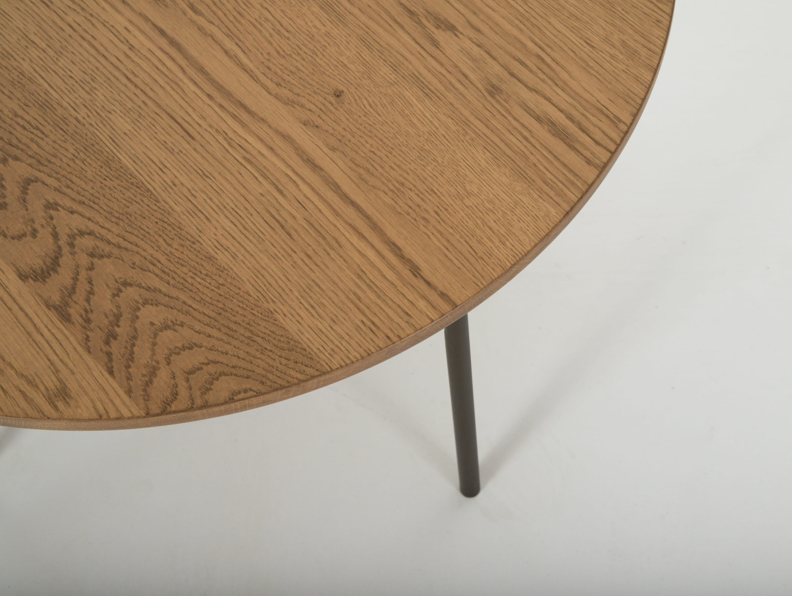 Placa masutei cafea este realizata din lemn masiv de stejar cu ciclu lung de uscare. Picioarele sunt fabricate din otel.