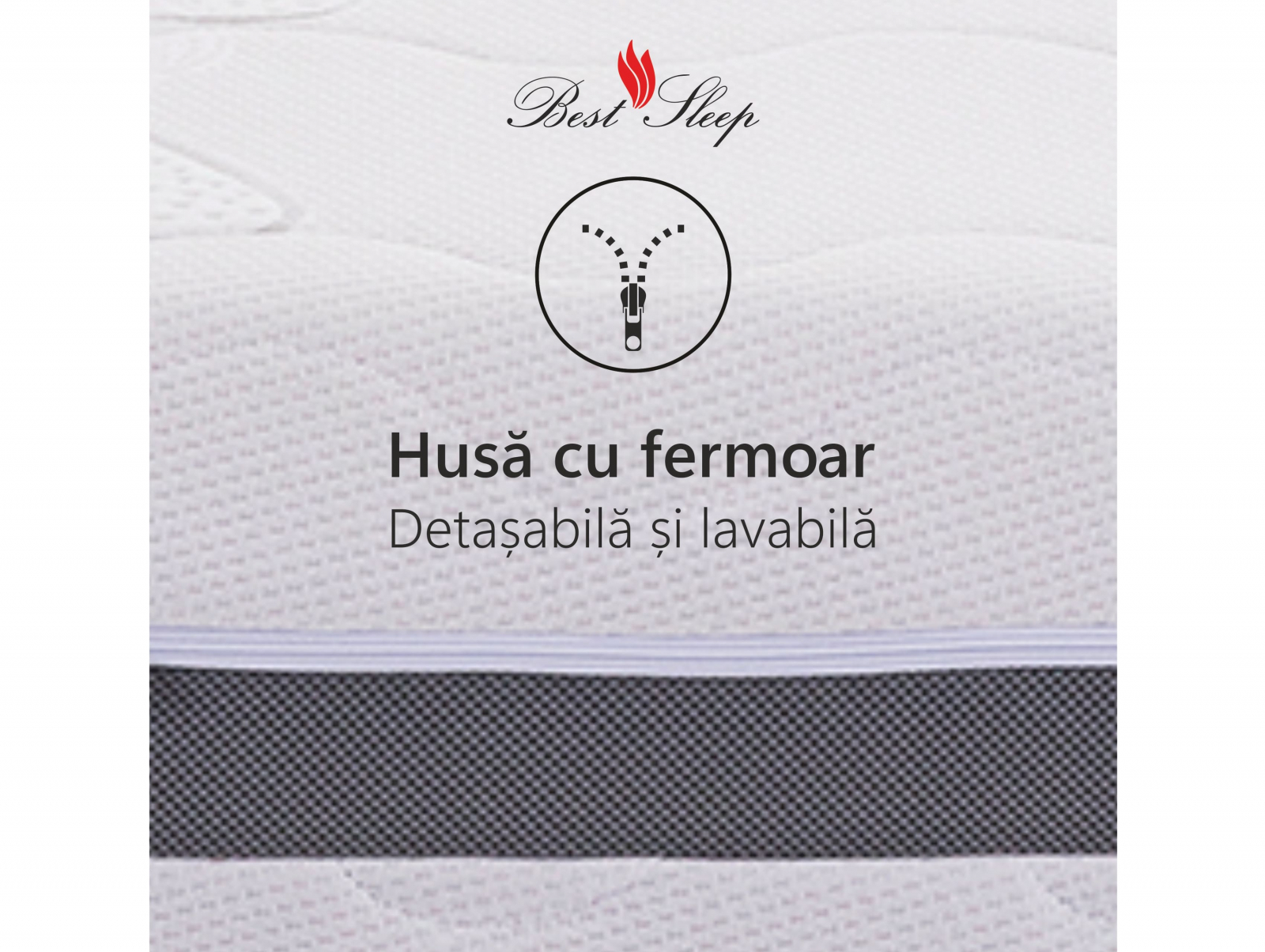 Husa detasabila: Salteaua beneficeaza de o husa detasabila cu fermoar pentru a fi usor de spalat sau inlocuit.